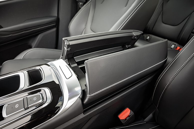 Центральна консоль в JAC JS6 ділиться на два поверхи: вище розташовано дисковий селектор коробки передач, клавіші електронного стоянкового гальма і системи Autohold, блок управління клімат-контролем, бездротова зарядка для смартфона і два підстаканники з утримуючими пелюстками. Нижче – зручний та великий відсік для сумки чи дріб’язку та великий вентильований бокс у підлокітнику, стулки відкриваються як у престижних європейських моделях.