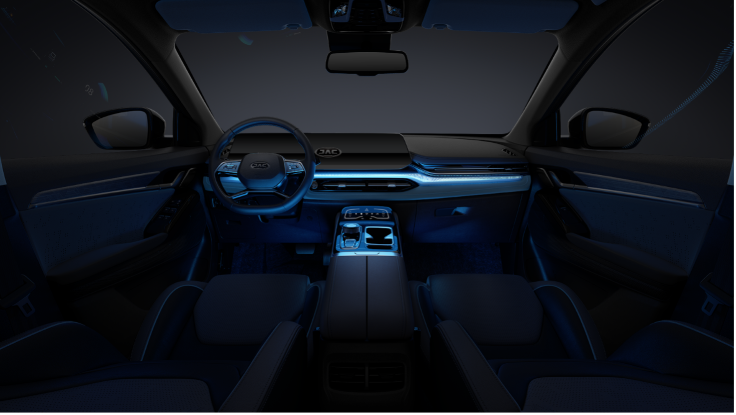 JS6 може похвалитися галактичною підсвіткою салону, колір та ритм світіння якої можна налаштовувати.Панель приладів представляє собою подвійний екран «Double 12.3», з якого можна керувати переважною більшістю функцій автомобіля.
